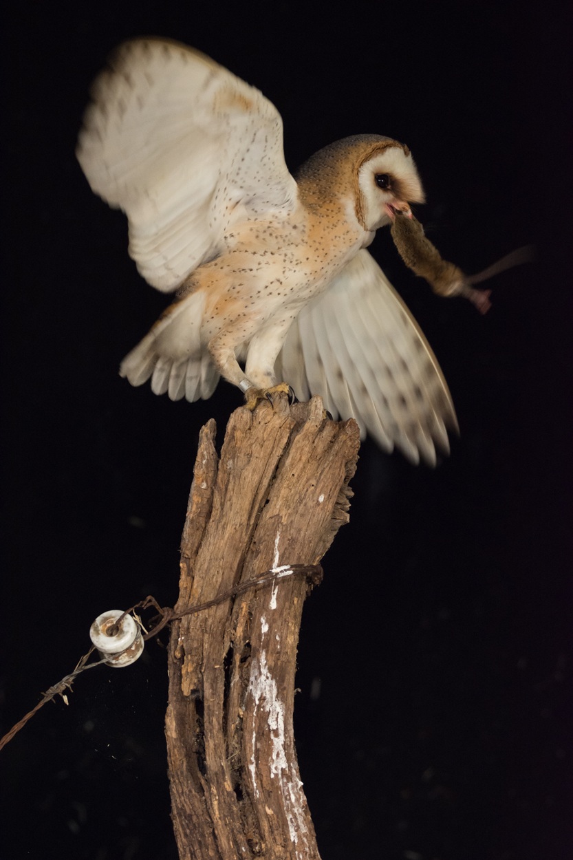 Foto links: kerkuil met prooi – Hans Peeters; midden: kerkuil vliegt uit om op jacht te gaan – Hans Peeters; rechts: op de uitkijk – Lianne Otter